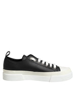 Dolce & Gabbana Black White Leather Low Top Sneakers Shoes