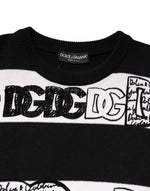 Dolce & Gabbana Black White Logo Print Wool Pullover Sweater