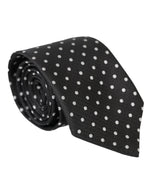 Dolce & Gabbana Black White Polka Dots 100% Silk Necktie Face Mask