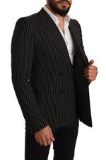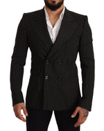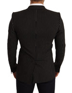Dolce & Gabbana Black White Striped Slim Fit Coat Blazer