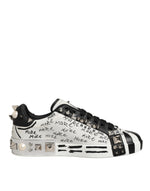Dolce & Gabbana Black White Studded Low Top Sneakers Shoes