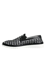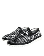 Dolce & Gabbana Black White Weaved Slip On Men Loafers Shoes