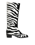 Dolce & Gabbana Black White Zebra Over The Calf Boots Shoes