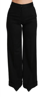 Dolce & Gabbana Black Wide Leg Flared Trouser Cashmere Pants