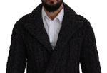Dolce & Gabbana Black Wool Knit Double Breasted Coat Jacket