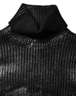 Dolce & Gabbana Black Wool Long Sleeve Turtleneck Cropped Top
