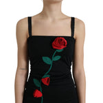 Dolce & Gabbana Black Wool Sleeveless Rose Applique Dress