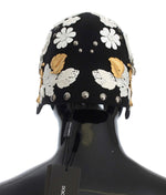 Dolce & Gabbana Black Wool White Floral Gold Leaf Hat