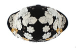 Color: Black with white floral Ricamo, gold and silver metal detailing