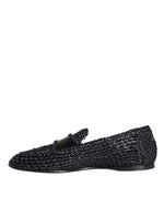 Dolce & Gabbana Black Woven Raffia Slip On Loafers Men Shoes