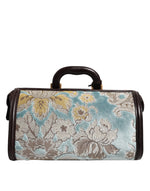 Dolce & Gabbana Blue Brown Leather Floral Jacquard Travel Handbag Bag