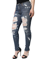 Dolce & Gabbana Blue Cotton Stretch Tattered Skinny Jeans