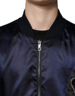 Dolce & Gabbana Blue Crown Heart Full Zip Men Bomber Jacket