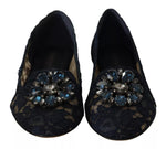 Dolce & Gabbana Blue Crystal Loafer Lace Ballet Flats Shoes