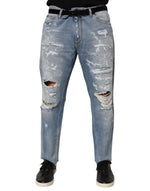 Dolce & Gabbana Blue Distressed Ripped Denim Pants Jeans