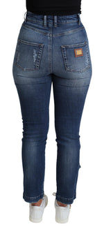 Dolce & Gabbana Blue Embellished Skinny Trouser Cotton Jeans