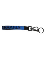 Dolce & Gabbana Blue Logo Nylon Silver Brass Men Holder Keychain Keyring