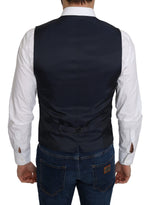 Dolce & Gabbana Blue Silk Romb Pattern Formal Coat Vest