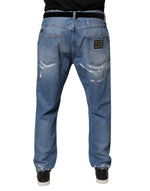 Dolce & Gabbana Blue Tattered Straight Cotton Denim Jeans