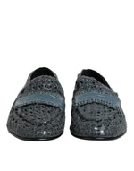 Dolce & Gabbana Blue Woven Raffia Slip On Loafers Shoes