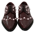Dolce & Gabbana Bordeaux Leather Crystal Pearls Formal Shoes