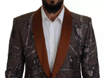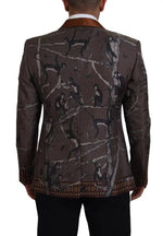 Dolce & Gabbana Bronze Monkey Print Silk Slim Jacket Blazer