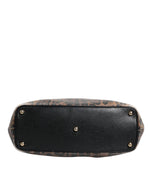 Dolce & Gabbana Brown Black Calfskin Leopard Print Shoulder Tote Bag
