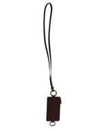 Dolce & Gabbana Brown Calf Leather Lanyard Logo Card Holder Wallet
