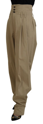 Dolce & Gabbana Brown Cotton High Waist Tapered Pants
