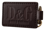 Dolce & Gabbana Brown Leather Logo Metal Ring Hook Keychain