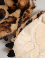 Dolce & Gabbana Brown Leopard Knitted Fur Wrist Mitten Gloves