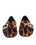 Dolce & Gabbana Brown Leopard Print Crystals Loafers Flats Shoes