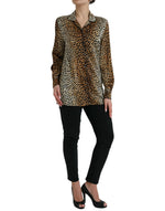Dolce & Gabbana Brown Leopard Print Long Sleeves Blouse Top