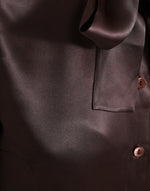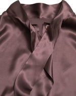 Dolce & Gabbana Brown Silk Ascot Collar Long Sleeve Blouse Top