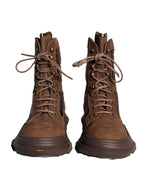 Dolce & Gabbana Brown Suede Leather Military Combat Men Boots Shoes