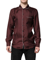 Dolce & Gabbana Burgundy Silk Dotted Long Sleeves Shirt