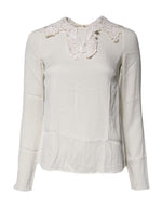 Dolce & Gabbana Cream Floral Lace Long Sleeves Blouse Top
