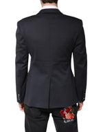 Dolce & Gabbana Dark Blue Cotton Men Jacket Coat Suit Blazer