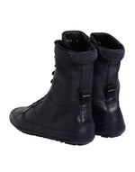 Dolce & Gabbana Dark Blue Leather KING High Top Sneakers Shoes