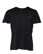 Dolce & Gabbana Dark Blue Logo Plaque Cotton Crewneck T-shirt