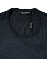 Dolce & Gabbana Dark Blue Silk Crew Neck Short Sleeve T-shirt