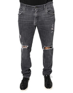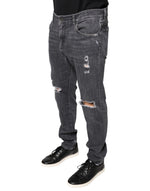 Dolce & Gabbana Dark Gray Tattered Cotton Skinny Denim Jeans