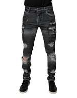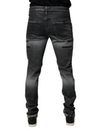 Dolce & Gabbana Dark Gray Tattered Cotton Skinny Denim Jeans