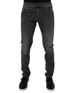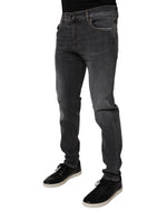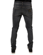 Dolce & Gabbana Dark Gray Washed Cotton Slim Fit Denim Jeans