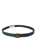 Dolce & Gabbana Dark Green Leather Square Metal Buckle Belt
