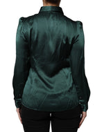 Dolce & Gabbana Dark Green Silk Button Down Long Sleeves Blouse Top