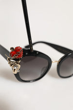 DG4319F sunglasses feature a bold red butterfly frame embellished with Sacred Heart crystal details. A true statement piece, these shades capture the brand’s signature blend of artistry and luxury.