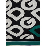 Dolce & Gabbana logo sweater in black with allover logo in white. Contrasting green/black elastic knit crew neck, cuffs, waistband. Article Sku: FX469T JAVPX. Composition: 98% Wool, 2% Polyester-Sku inside:23NOV91