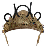 Dolce & Gabbana Gold Brass Floral Crystals LED Lights Crown Tiara Diadem