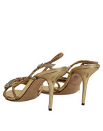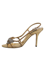Dolce & Gabbana Gold Strass Ankle Strap Heels Sandals Shoes